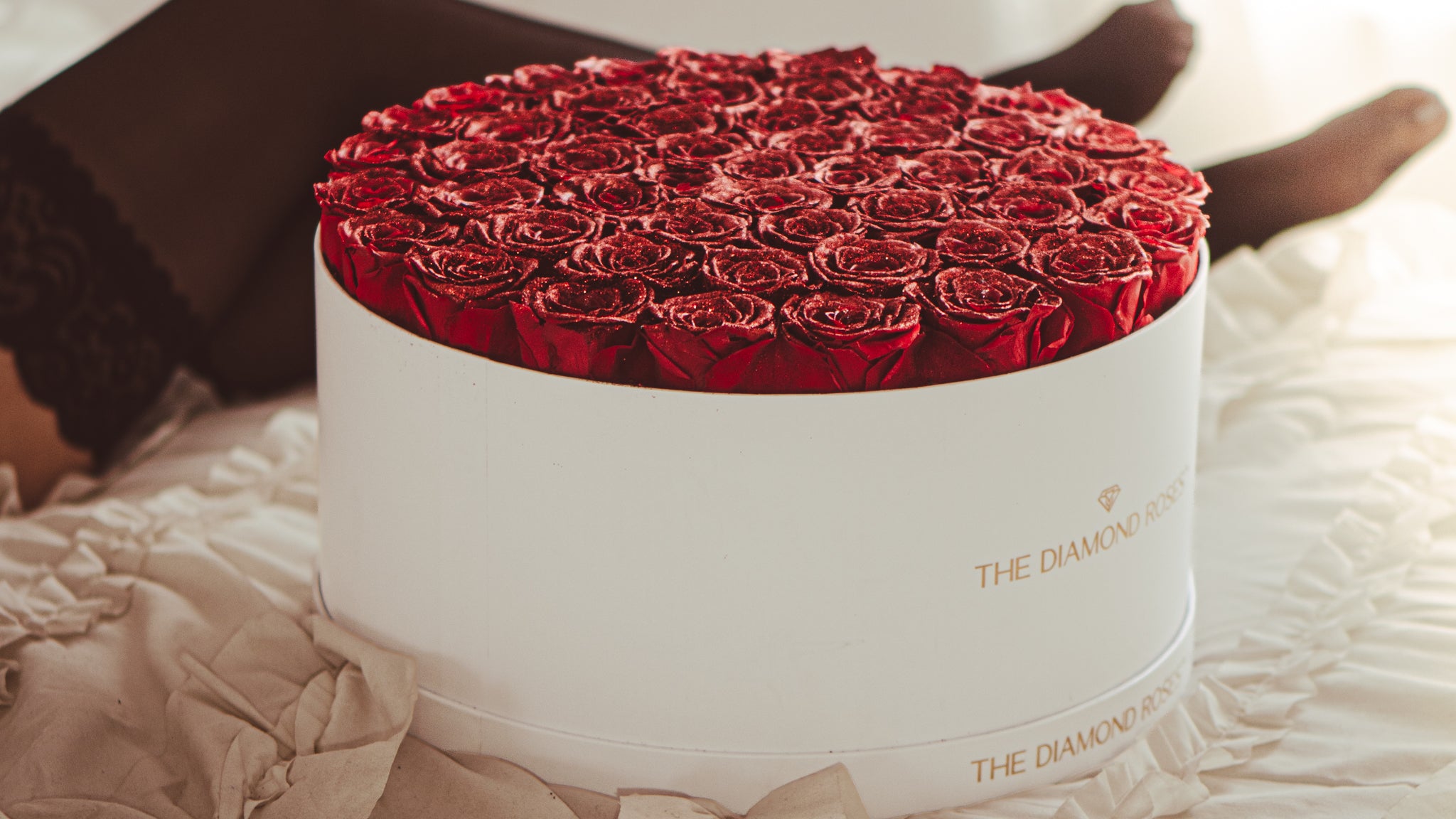 Every rose is finished with a custom diamond-sparkle coating created to catch light from every angle. It’s applied by hand, layer by layer, for a refined shine.